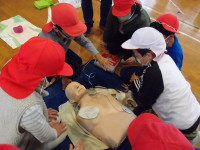 5・6年生は、心肺蘇生法とAEDの操作を体験しました。